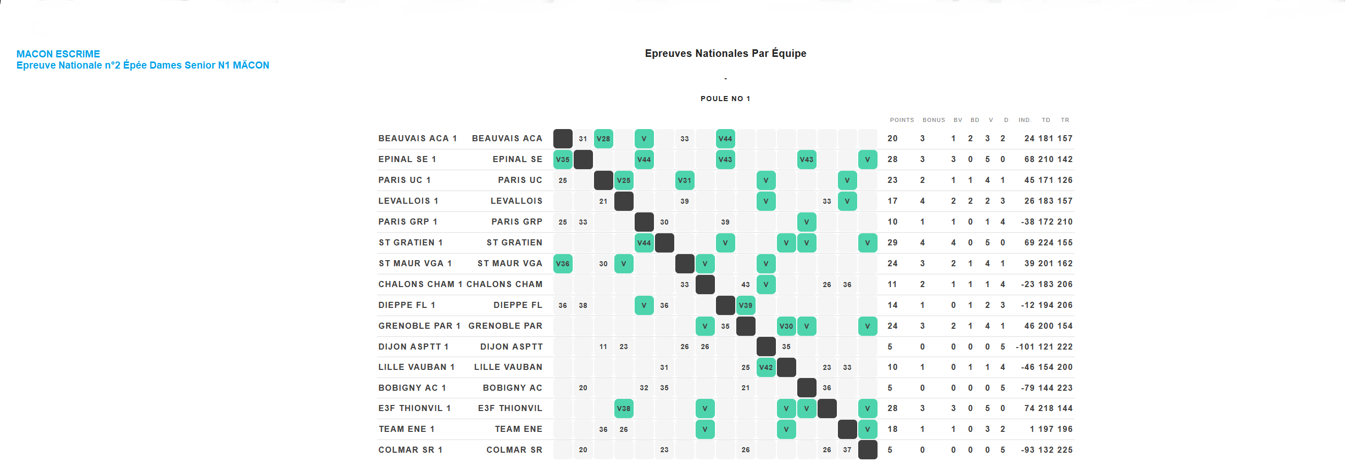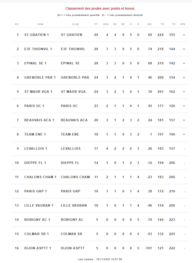 Bobigny 5 défaites actuellement 14ème au classement (équipe constituée Aaliyah CUSTOSSE, Gaëlle BECHADE, Romane IOUALALEN,Camille POZZOLI)